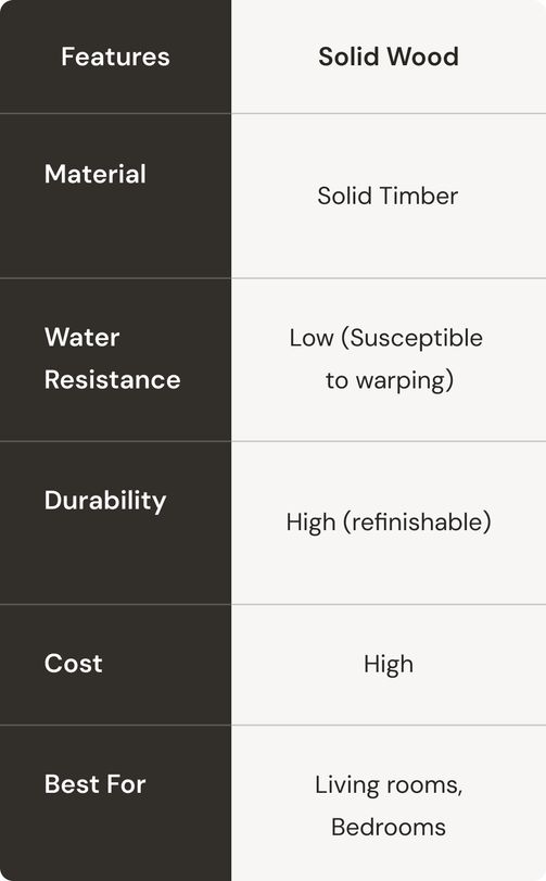 A premium Australian hardwood with a smooth, fine grain and a subtle golden finish. Elegant without being too dramatic.